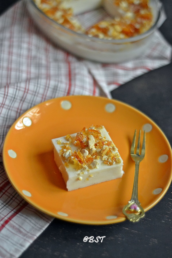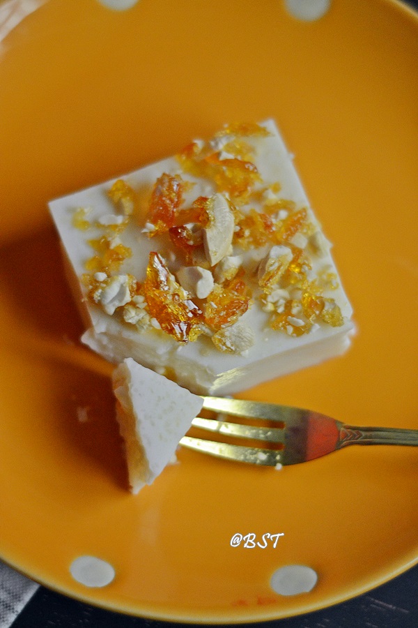 I like gelatin better than china grass because I never knew how much grass is too much or too less!:-) It still overwhelms me. Such puddings are so popular and a mandate for any party back home isnt it? All my cousins are experts in making puddings with china grass… Cashew Praline can only take things up a notch!