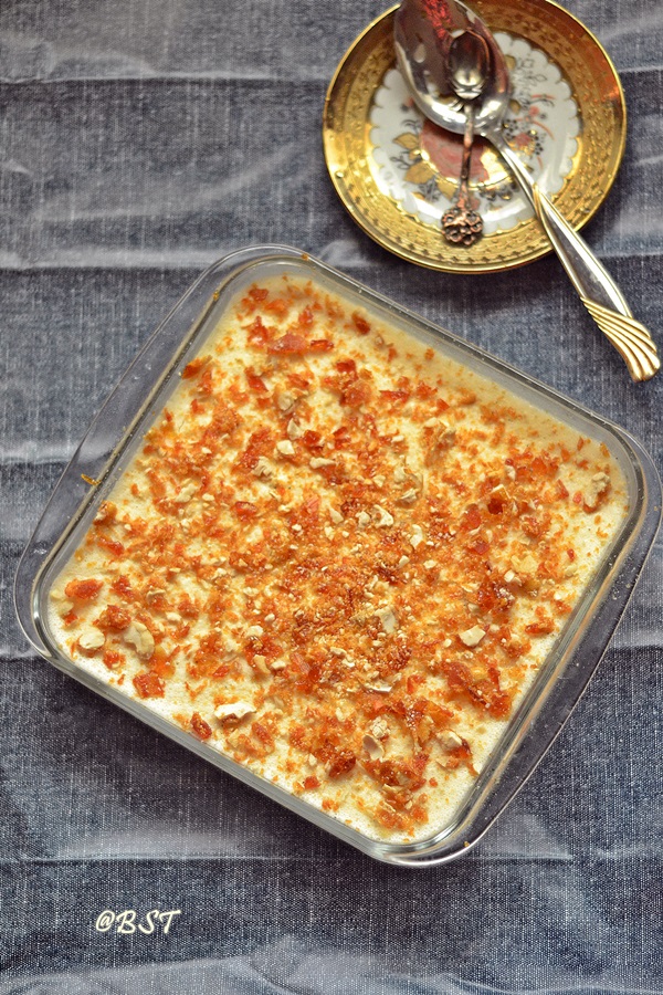 Coming to today’s recipe, I made this dessert during Ramadan after seeing it on Sadaf’s Instagram page. I then realized that the blog belonged to her as well. If you search “Butter Souffle”, you would find only her link, and the rest of the souffles are those that have its head peaking out of the ramekin… Hehe… Somehow I feel that as Indians, we love to call any dessert that is silky smooth as “souffles” and most of the time, they tend to be no-cook or no-bake. This one does have a little cooking, but most of the time is the resting time… I have to sincerely thank Sadaf and her cousin for introducing this awesomely delicious pudding…