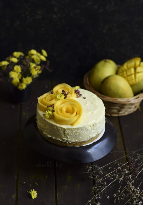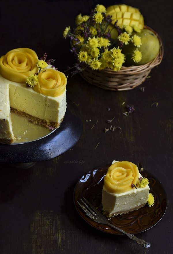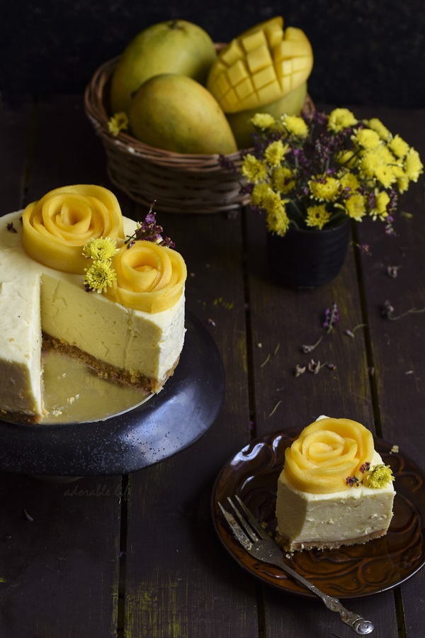 - While serving place mango slices on top of the cheesecake to make it look beautiful.