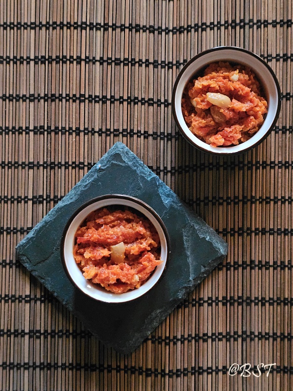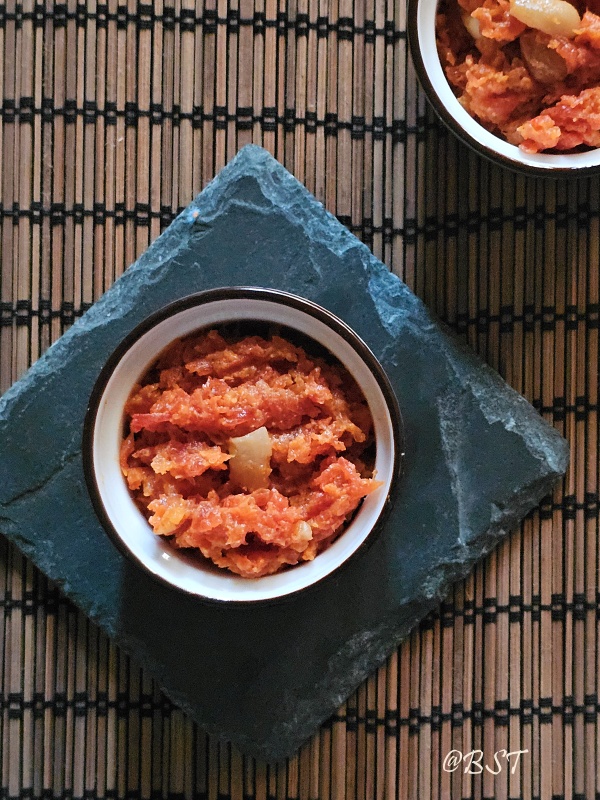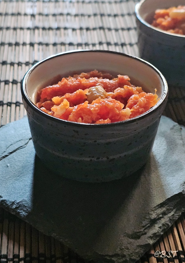 OK, so coming back to the halwa, I was just noticing that in my first post, Rasha had grated the carrots and she was tiny. This time as well, she repeated the process. She never says no to peeling and grating carrots, I am not sure if it is out of liking the activity or having no energy to say “no”. Hehe… The Instant Pot works just like a pressure cooker, so first we put it “Sauté” setup and then pressure cook on high, before we sauté the halwa again till it dries up. I kept the timer for the pressure cooker at five minutes and natural release to overcook the carrots literally, but if you don’t want that, you can keep it for 3 or 4 minutes and let the pressure go as soon as it is done. Sauté till the halwa dries up and it is ready to be enjoyed. As much as I love this halwa, the only issue is that it literally shrinks to half once cooked and makes us feel that there is hardly anything to eat. Hehe… Off to the recipe…