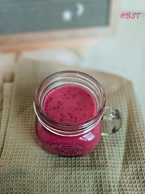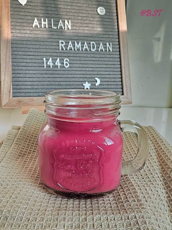 I try to stay away from sugary drinks but ever since my friend Samiha posted a beetroot drink on her handle very long back, I have been wanting to make something similar and finally it happened. On the day before Ramadan, I made beetroot upperi for lunch and I saved up a small cooked beetroot to make this drink. It is rose milk but with a touch of beetroot to it. Yes, the beetroot does lend its earthy tones and smell to the drink and it didn’t go too well with my girls, but I totally loved how it balanced out the sweetness of the rose syrup. It also gave a very deep tone to the drink, which made it look beautiful. It was like adding a healthy twist to your regular rose milk, maybe something in the lines of the Mohabbat Ka Sharbath. 😉 Off to the recipe…