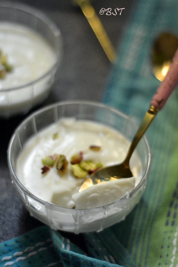 Updated with new pictures and refreshed recipe on April 8, 2022: This was initially published as a guest post on another blogger’s page. While having a discussion with another fellow blogger, she mentioned having a problem with a guest post she did for the same blogger around the same time. Thankfully, I had already updated the post on the blog, as I usually do, so my recipe was still in tact. Moreover, I thought, since the recipe came into my attention and I have been craving for it, why not make it? Ramadan is one of the best times to enjoy such light desserts during Iftar time or as post dinner treat. So there you go, a much deserved face lift for a favorite dessert of mine… 🙂