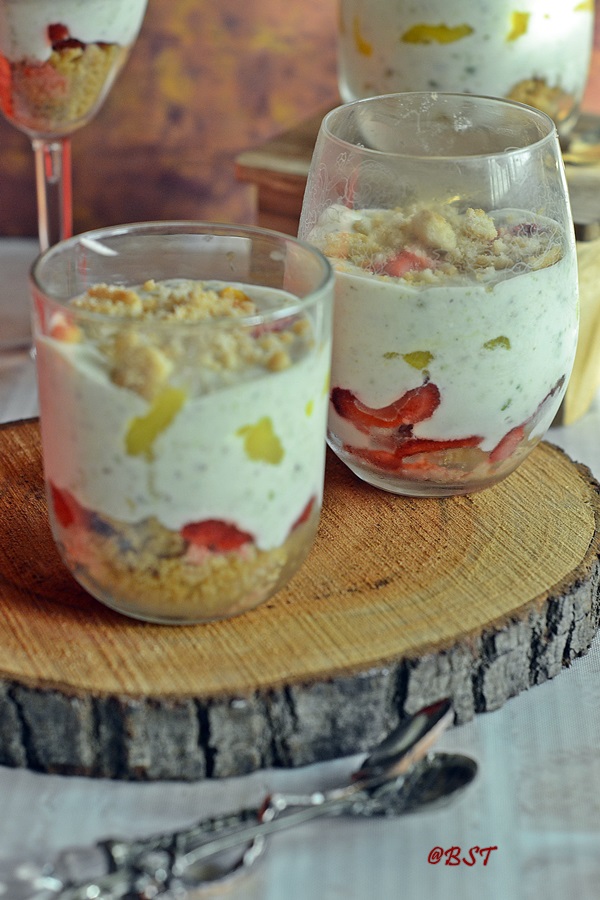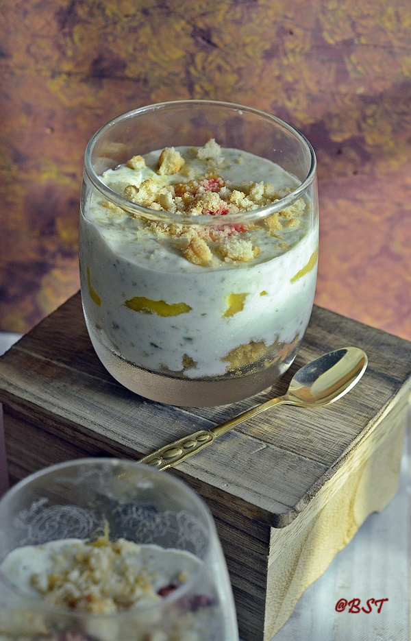 Awesome ! First I love the name , definitely very Arabic and somehow I love these Arabic desserts . The pistachio cream , mangoes , strawberries and the biscuits all assembled into a layered pudding – wow ! I am sure we all will love it too . Simple , but a fantastic dessert .