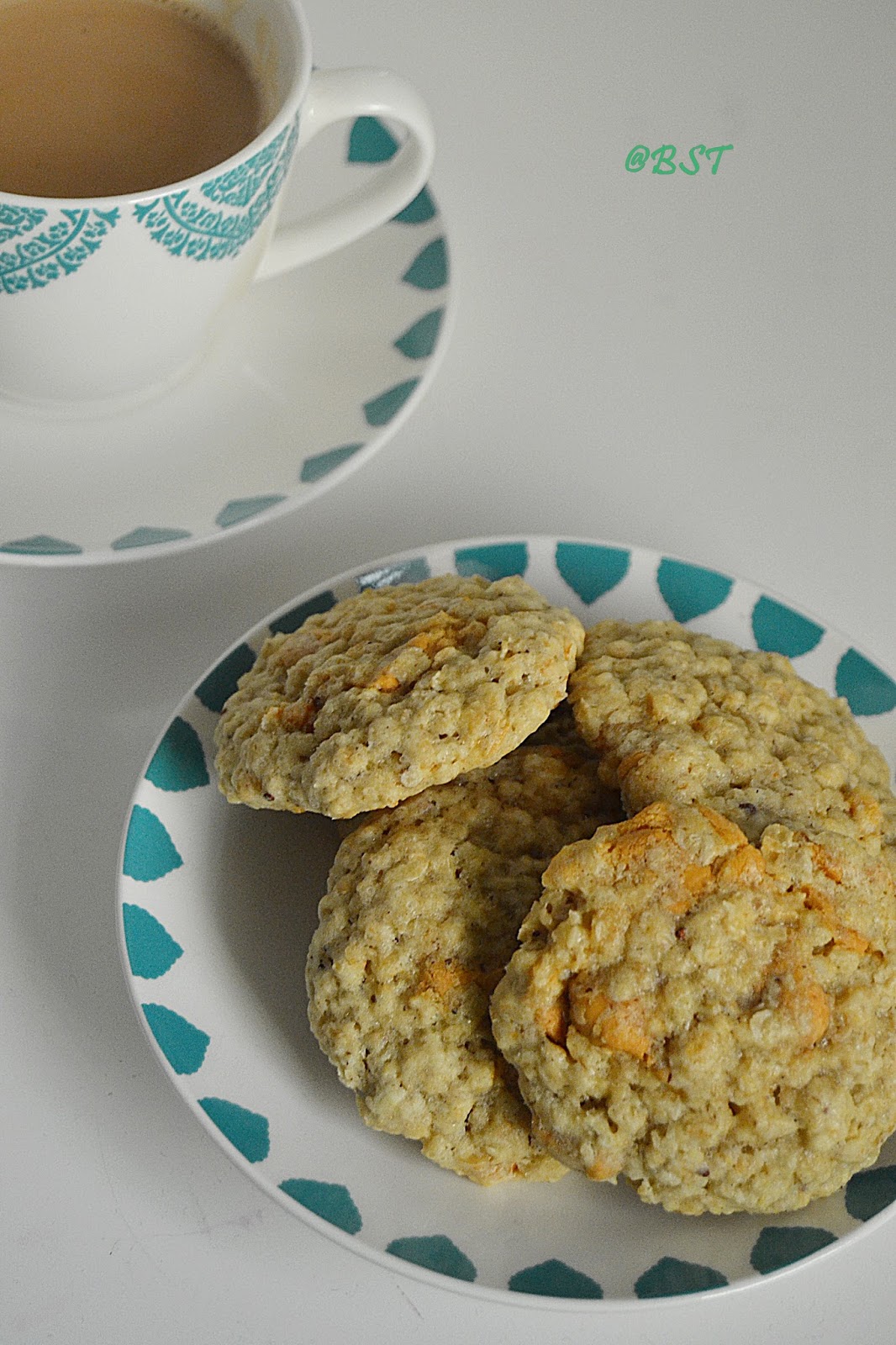 So here I am as the host for this month, and the theme given was “Baking with Oats”. I had chosen a few interesting bakes with oats, since now it is one ingredient that has grown away from just being used as porridge. One of the recipes I had selected were these cookies, that I had baked off the wrapper of the pack of Hershey’s Butterscotch Chips I had purchased from the Candylicious outlet at Dubai Mall. The cookie didn’t disappoint, though I found the butterscotch chips a bit too sweet to my liking! You can easily replace them with chocolate chips but then the title of the post would change! 😉