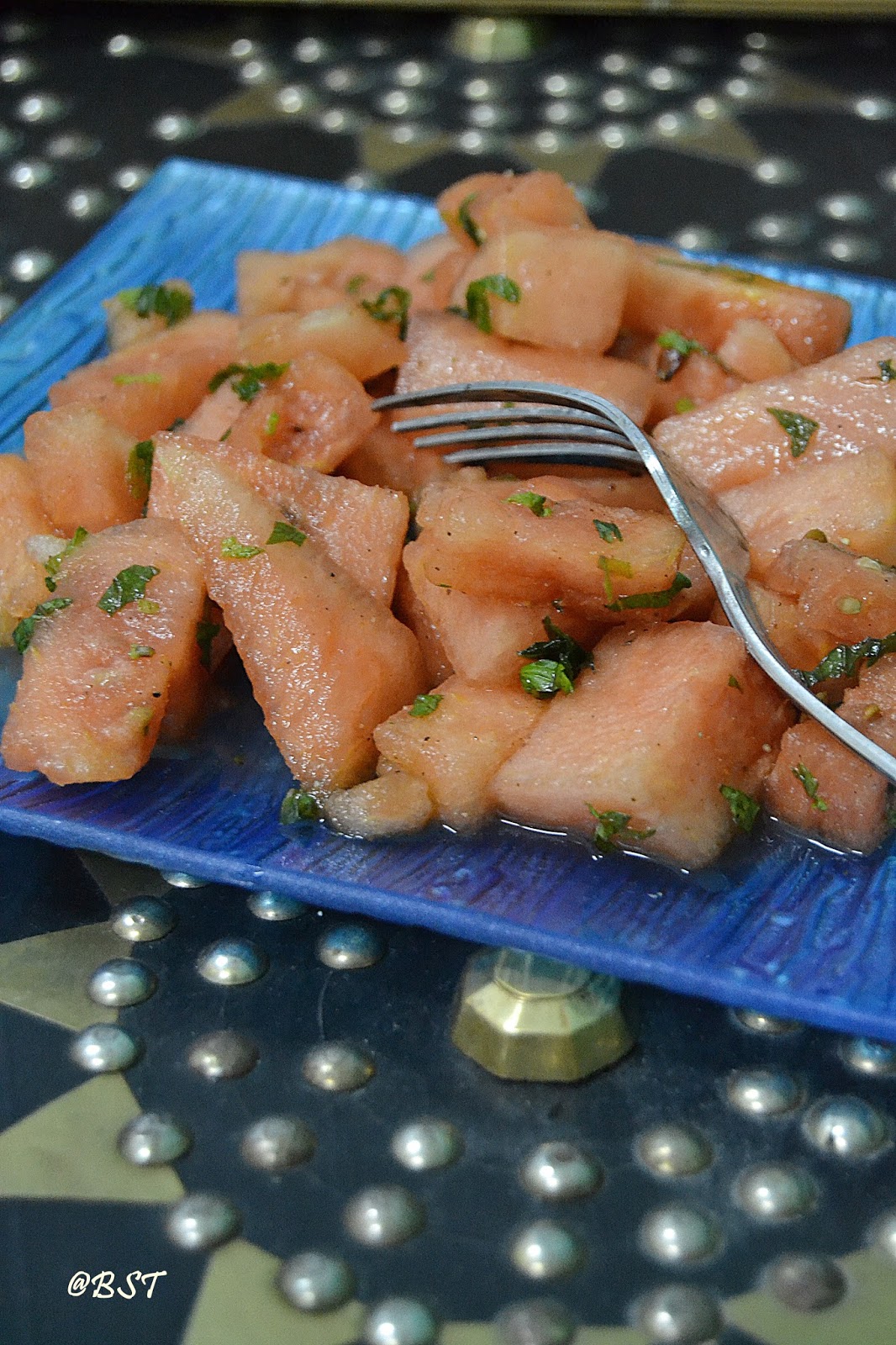 Watermelon is one fruit that is always on our Iftar tables. A large plate cut vanishes in minutes, thanks to the kids who are big fans of this delicious watery fruit. Even though I do like it plain, at times, I like it with a mild minty taste and like a little salad, so simple yet gives a nice twist to this delicious fruit…